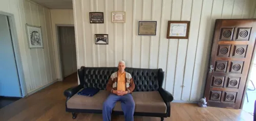 Morando na mesma casa desde 1968, viu ali seus filhos crescerem e voltarem com seus netos e bisnetos. Apesar de ter perdido a esposa há mais de trinta anos, figura ela na parede da sala em uma pintura e em fotos ao lado do esposo, fazendo com que sua imagem seja remetida visualmente em meio as memórias citadas. A casa com traços simples em meio ao bairro que, segundo o próprio Eloyr, era um grande cafezal atrás de uma das três grandes serrarias, tem na sala uma pequena cápsula do tempo que nos permite vivenciar uma experiência única.