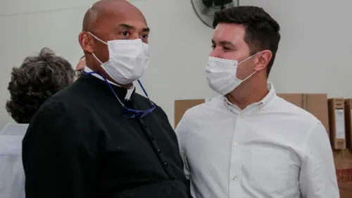 O padre José Roberto Rezende, cura da Catedral Nossa Senhora de Lourdes, de Apucarana, foi convidado para dar a bênção na entrega dos kits de rebótica para as escolas, nesta sexta em Apucarana.