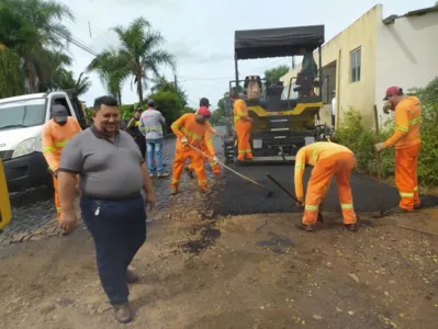 O prefeito Pedro Taborda Desplanches, acompanhou o início do recape asfáltico bastante animado.