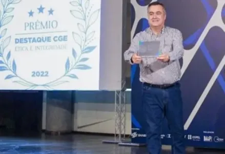 A Secretaria de Estado da Saúde recebeu nesta sexta-feira o Prêmio Destaque CGE – Ética e Integridade 2022, na categoria Gestores de Transparência. A premiação foi concedida pela Controladoria-Geral do Estado durante o 3º Simpósio Paranaense contra a Corrupção, realizado no Canal da Música, em Curitiba, Na ocasião foram anunciados os Agentes e Gestores Destaque 2022, por meio de votação interna, nos quesitos Transparência, Ouvidoria, Controle Interno e de Compliance. O secretário da Saúde, Beto Preto (foto), agradeceu o reconhecimento. “É uma satisfação participar desse simpósio do Governo do Estado, por meio da CGE. Agradeço ao controlador-geral pelo esforço em levar o assunto do compliance e da transparência, da ética e da integridade até nós, servidores da saúde”, enfatizou.