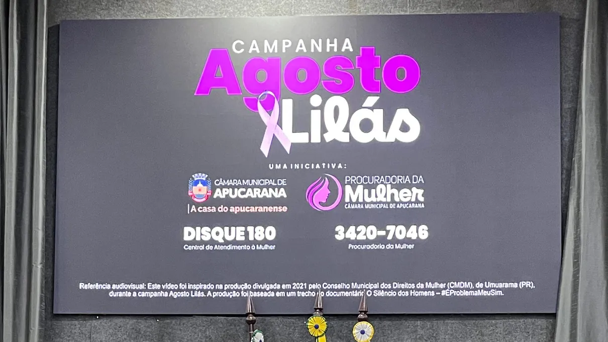 Para a Câmara de Apucarana, o combate à violência contra a mulher é uma prioridade permanente. Por isso, o Legislativo apoia iniciativas que promovam a equidade, a proteção dos direitos e o fortalecimento da cidadania. O Agosto Lilás é uma oportunidade de ampliar o diálogo com a população, esclarecer dúvidas e incentivar a denúncia de abusos e agressões.