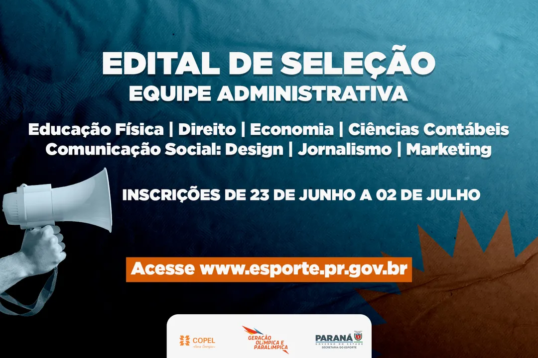 SELEÇÃO – O processo seletivo será composto por três etapas: análise curricular, prova de conhecimentos específicos e entrevista. Os conteúdos avaliados incluem a Política de Esporte do Paraná, os projetos desenvolvidos pela Paraná Esporte e os fundamentos do Programa Geração Olímpica e Paralímpica.