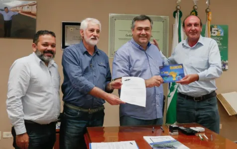 O prefeito de Apucarana assinou o documento da sua indicação na presença dos representantes da Confederação Nacional dos Municípios, Juarez Lima Henrichs, consultor, Roberto Meneghini, departamento de Relações Institucionais Região Sul e São Paulo e Hilton Silva do departamento de Estudos Técnicos.