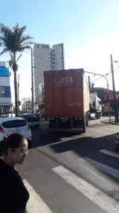 Caminhão enrosca em suporte de semáforo e bloqueia avenida no centro de Apucarana