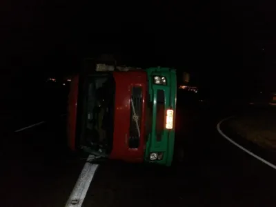 Um caminhão com placas de Cambira tombou após suposta pane mecânica e ficou no meio da pista, dificultando o trânsito. O motorista não sofreu ferimentos.