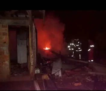 O fogo consumiu a edificação e tudo o que estava em seu interior.Segundo o Corpo de Bombeiros, ninguém ficou ferido.