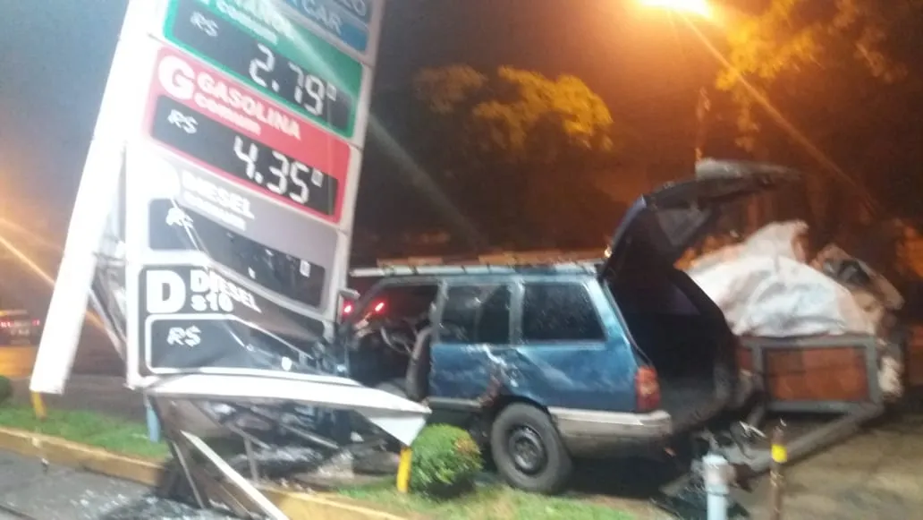 Segundo informações da Polícia Militar (PM), o motorista dirigia um Fiat Elba quando perdeu o controle da direção e bateu contra uma placa de da sinalização de trânsito e outra placa de preços do estabelecimento.