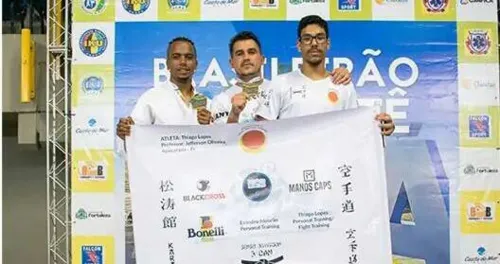 Representando a seleção paranaense, os atletas Jeferson Oliveira Corrêa, 38 anos, Thiago Lopes, 30, e Guilherme Colares, 16, da Academia Ipon/Projeto Karatê Vida, de Apucarana, foram destaques no Campeonato Brasileiro de Karatê Esportivo, realizado no Ginásio de Esportes Paulo Sarasate, em Fortaleza-CE. Juntos eles trouxeram cinco medalhas de bronze para Apucarana.