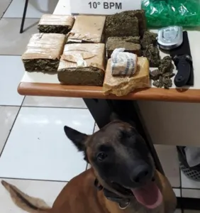 A apreensão foi possível graças ao auxílio do cão de faro Aço, do canil do 10º Batalhão da Polícia Militar (BPM). Ninguém foi preso durante a operação.