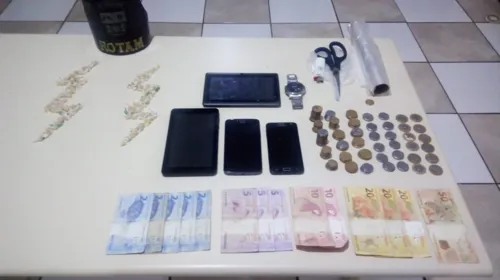 Ao todo, a PM apreendeu 160 pedras de crack, embalagens usadas para a venda do entorpecente e outros materiais, além de R$ 196 em dinheiro trocado.