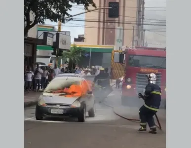 Veículo pega fogo em meio a rua e mobiliza Corpo de Bombeiros