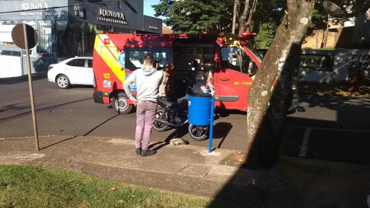 Após atendimento, o motociclista que teve apenas escoriações recusou encaminhamento ao hospital.