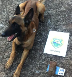 A Polícia Militar (PM) com auxílio do cão de faro, apreendeu 140 gramas de maconha. A droga estava escondida em um terreno no Jardim Trabalhista.