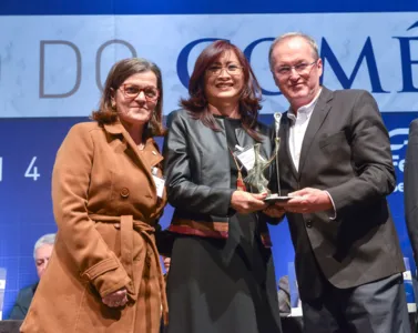 A Apucaranense Margarida Nakamura recebeu o Troféu Guerreiro do Comércio. O evento, promovido pela Fecomércio PR em homenagem ao Dia do Comerciante, aconteceu na última sexta-feira, dia 12, no Centro de Eventos Expo Unimed, com patrocínio da Caixa Econômica Federal, em Curitiba. A 14ª edição do Guerreiro do Comércio homenageou 47 empresários paranaenses de sucesso.