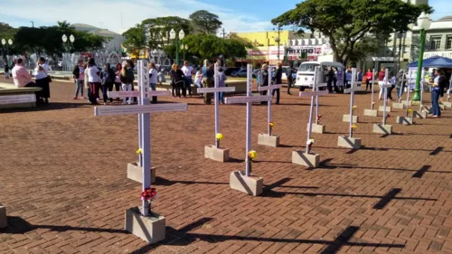 Vinte cruzes foram expostas na praça e, nelas, estarão dados de feminicídio no Estado e no município, para que a população possa ter conhecimento da frequência com que esse tipo de crime é cometido, o quanto se faz necessária sua coibição por meio da prevenção e da proteção da mulher, assim como quais são as políticas públicas promovidas para a diminuição dos índices de violência doméstica.