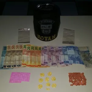 Durante revista, a PM encontrou 158 comprimidos de ecstasy. A equipe apreendeu também micropontos de LSD e uma porção de maconha.
