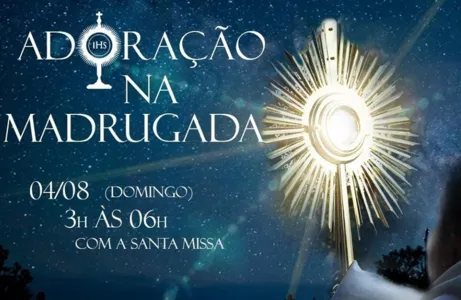 Serão três horas de adoração ao Santíssimo Sacramento, das 03h às 06h da madrugada, encerrando com a Santa Missa que deve terminar por volta das 07h da manhã.