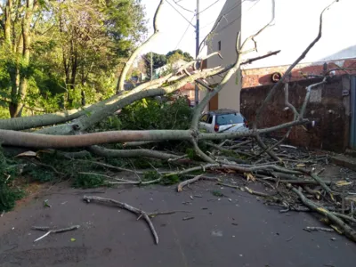 Uma árvore de grande porte caiu na manhã desta quarta-feira (14) em Apucarana, no Jardim Eldorado.