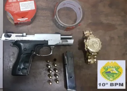 Durante as buscas, os policiais ouviram um tiro e fora verificar o que estava ocorrendo. Na sequência avistaram um caminhão saindo de uma propriedade em alta velocidade. Houve perseguição e a PM conseguiu abordar o veículo. O motorista ainda tentou fugir a pé mas acabou detido. Com ele foi apreendida uma pistola de cor prata de calibre .40 com 9 cartuchos intactos.