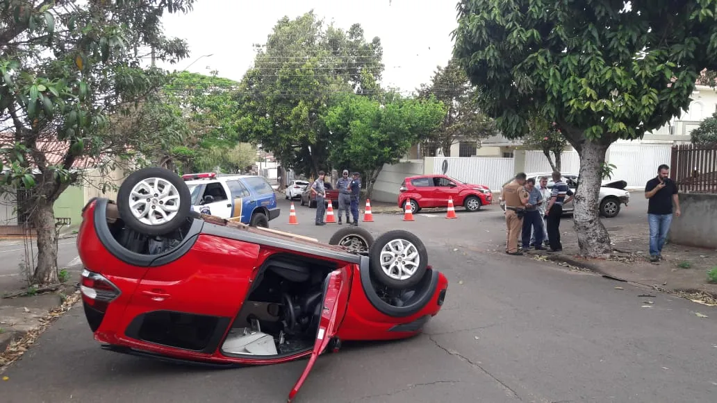 O homem de 79 anos seguia pela Miguel Moreno quando cruzou a João Cândido Ferreira e bateu na lateral do Fiat Mobi, de Londrina, conduzido pela vítima. Com o impacto da batida, o Fiat Mobi capotou e ficou de ponta cabeça.