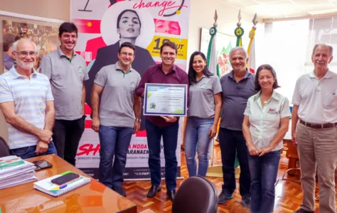 A direção do Colégio Agrícola de Apucarana homenageou hoje o prefeito Junior da Femac com a entrega de uma placa de agradecimento pela parceria da prefeitura na realização da Expoagro 2019. “Nosso evento superou todas as expectativas e a nossa instituição é grata pela parceria e dedicação oferecida pelo prefeito Junior e sua equipe”, disse a diretora do Agrícola, Rose Pimenta Campos.