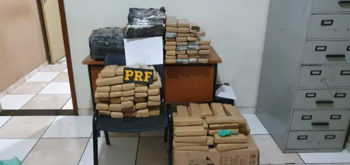 A Polícia Rodoviária Federal, PRF, apreendeu 155 kg de maconha e cigarros contrabandeados durante a noite de ontem (22), em Apucarana. Um jovem de 22 anos foi preso.