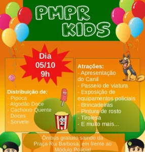 A Polícia Militar (PM) de Apucarana irá realizar no próximo sábado (5) um evento voltado para as crianças da cidade e região. O PMPR Kids acontece as 9h, na sede do 10º BPM.