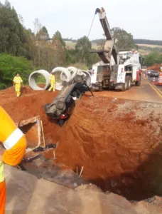 No local do acidente, acontece obras de duplicação da rodovia, e nesta manhã, manilhas para o escoamento da água serão instaladas, e por isso a valeta estava aberta. A obra acontece bem próxima da rodovia.