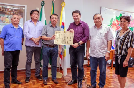 O ex-vereador e presidente do Conselho Deliberativo da Associação Cultural e Esportiva de Apucarana (Acea), Satio Kayukawa, manteve audiência ontem com o prefeito Junior da Femac. Acompanhado do presidente da Acea, Kenite Ishida, e de outras lideranças da comunidade nipônica local, Kayukawa apresentou ao prefeito o Diploma de Honra ao Mérito que ele acaba de receber do Governo do Japão.