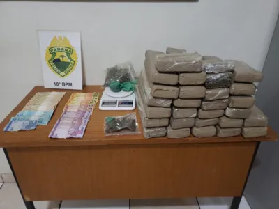 A Polícia Militar (PM) de Apucarana apreendeu 23,560 kg de maconha durante a noite de quarta-feira (23). Toda a droga estava em uma casa no Residencial Interlagos. Um rapaz de 20 anos e uma jovem de 19 foram detidos.