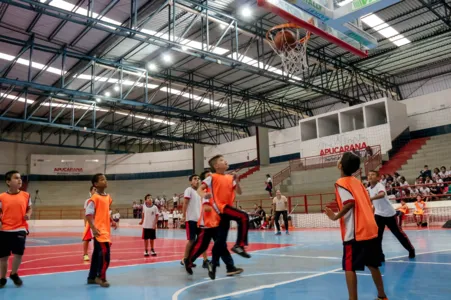 A Secretaria Municipal de Esportes, em parceria com a Autarquia Municipal de Educação, promoveu nesta quinta-feira (14/11) o 1º Festival de Basquete das Escolas Municipais. O evento, realizado no ginásio do Complexo Esportivo José Antônio Basso (Lagoão), contou com a participação de estudantes com idades entre 9 e 11 anos.