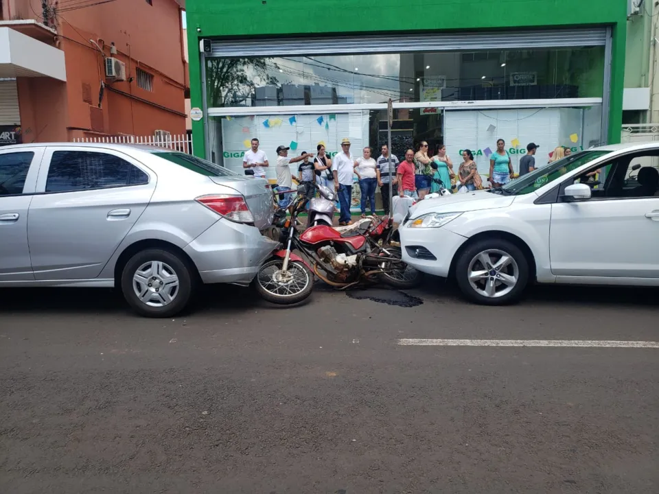 Ocorreu no começo da tarde desta quinta-feira (26) um acidente na área central de Apucarana, na Rua Osório Ribas de Paula, próximo aos Correios. A colisão envolveu dois carros e uma moto. Os motoristas foram liberados, porém, o motociclista foi encaminhado ao Unidade de Pronto Atendimento (UPA) com contusões pelo corpo.