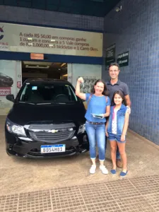 A sortuda Maria Otaciana Boschini Sanches, de 39 anos, foi com a família até o Shopping CentroNorte, de Apucarana, para retirar o carro, que foi sorteado no final do ano passado, dentro da campanha de Natal.