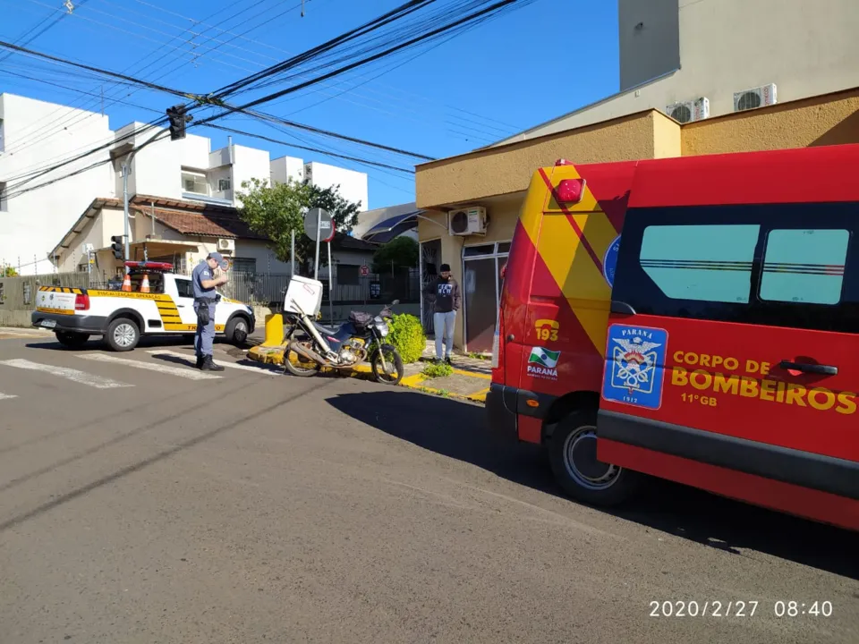 Um motociclista de 29 anos sofreu suspeita de fratura após se envolver em um acidente, na manhã desta quinta-feira (27) em Apucarana. A batida aconteceu na Rua Gastão Vidigal esquina com a Rua Prof. João Cândido ferreira, por volta das 8h50.