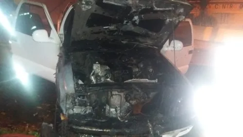Uma caminhonete S10 sofreu grandes dados após um incêndio, que atingiu a região do motor. O fogo começou por volta das 03h da madrugada desta segunda-feira (6), em Apucarana, na Rua Jamil Soni, em frente a Guarda Civil Municipal, GCM.