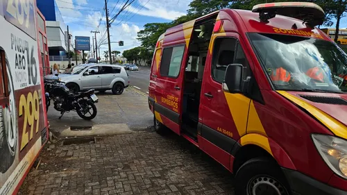 Um motociclista de 21 anos ficou ferido ao sofrer um acidente de trânsito e foi socorrido pelo Corpo de Bombeiros na tarde deste domingo (25), por volta das 16h30, em Apucarana (PR), na Avenida Minas Gerais, próximo ao Max Atacadista.