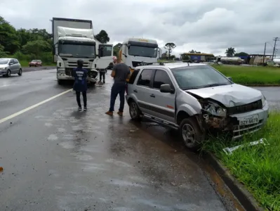 A colisão entre um caminhão e uma Ecosport. De acordo com informações do Serviço de Atendimento Móvel de Urgência (Samu), a equipe não foi acionada, mas informou que o Corpo de Bombeiros foi até o local. Três ocupantes da Ecosport sofreram ferimentos leves, o condutor, de 29 anos, uma passageira, 23 anos e a outra passageira, de 49 anos.