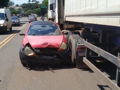 Um acidente envolvendo três veículos foi registrado no final da manhã desta quinta-feira (25) em Apucarana, na Avenida Minas Gerais. A batida envolveu uma moto, um carro e um caminhão. Os Bombeiros foram chamados por volta das 11h30.