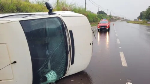 Uma Van tombou no Contorno Sul de Apucarana, no final da manhã desta terça-feira (12). Os Bombeiros foram chamados, porém, o motorista, de 26 anos, não ficou ferido. Chovia no momento do acidente. A Polícia Rodoviária Federal (PRF) também foi para o local.