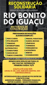 O grupo pretende levar os materiais pessoalmente até Rio Bonito do Iguaçu. “Estamos nos organizando para sair na madrugada do dia 19 com as camionetes e o caminhão carregados. O que tocar em seu coração já é muito. Desde já, muito obrigado!”, disse Anderson.