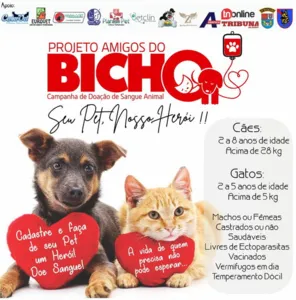 Neste domingo (4), dia de São Francisco de Assis, os amigos do bicho lançam a campanha de doação de sangue animal. Segundo a idealizadora do projeto Jaqueline Negreti, a ação é para ajudar a salvar vidas dos gatos e cachorros.