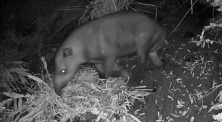 Uma anta (Tapirus terrestris) foi flagrada por câmeras de monitoramento da fauna em uma mata na região de Apucarana (PR). O registro foi divulgado pelo biólogo Fernando Felippe, o Repórter Selvagem, neste domingo (04).Veja o vídeo no final do texto