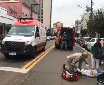Uma mulher de 49 anos ficou ferida na tarde desta terça-feira (23) na Avenida Curitiba, próximo à Praça Rui Barbosa, em Apucarana, depois de ser atropelada por uma motocicleta.