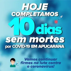 "Este é o tipo de notícia que todos aguardavam há tempo. Esperamos em breve zerar em definitivo as mortes. Continuemos com a imunização. Complete seu ciclo vacinal; use máscara em ambientes fora de casa e se possível evite aglomerações. Nos cuidemos em memória dos apucaranenses que não conseguiram suportar a doença".