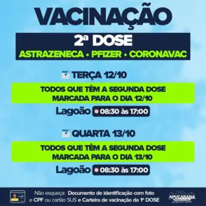 Quem for receber a 2ª dose precisa mostrar o cartão do SUS ou o CPF, um documento com foto e a carteirinha onde está registrado o recebimento da 1ª dose. Esses mesmos documentos devem ser apresentados para dose de reforço, bem como a carteirinha em que está registrada a aplicação da 1ª e 2ª doses.