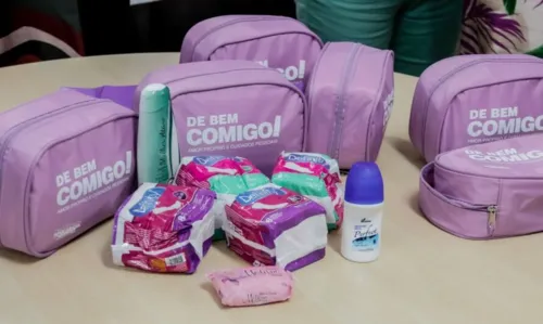 Os kits contam com dois pacotes de absorventes, um sabonete em barra e um líquido e um desodorante antitranspirante