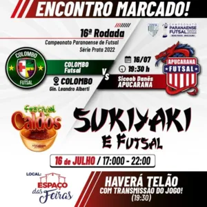 O Apucarana Futsal visita neste sábado (16) o Colombo para mais uma rodada da Série Prata do Campeonato Paranaense. O jogo, válido pela 16ª rodada, acontece às 19h30, no Ginásio Leandro Alberti, em Colombo.