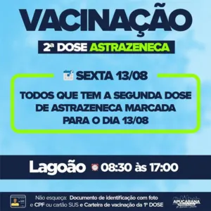 Município vai aplicar a segunda dose da vacina AstraZeneca contra a Covid-19.