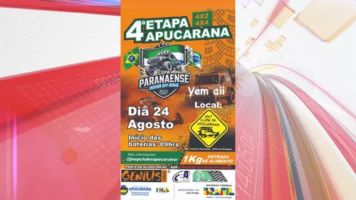 Apucarana recebe neste domingo (24), a 4ª etapa da Copa Paranaense Indoor Off-Road. O evento, que reúne competidores nas categorias 4x2 e 4x4, será realizado no Jeep Clube de Apucarana, localizado na Rua Cristiano Kussmaul, nº 2450, no Jardim Interlagos.