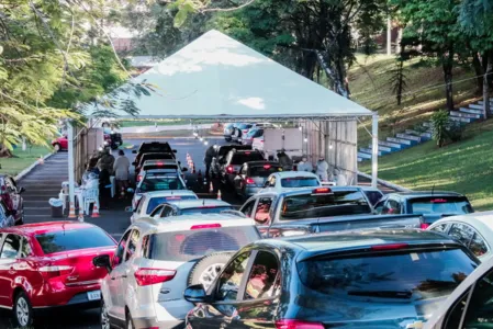 Imunização segue ao acontecendo no Complexo Esportivo Lagoão, pelo sistema drive-thru e dentro do ginásio para os que chegam a pé, de 8h30 às 17 horas.